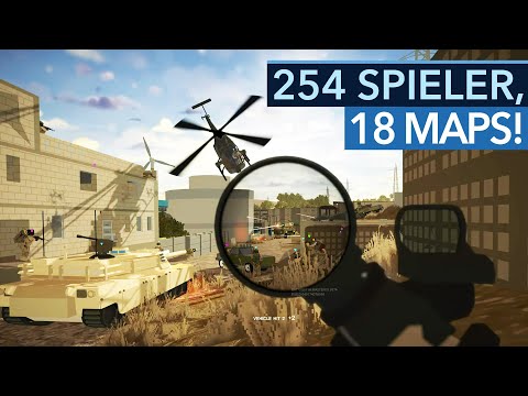 Wie im Vorbild gibt es Klassen und man kann sein Loadout pro Klasse freispielen und zusammenstellen. Man spielt unter anderem Conquest auf wirklich großen Maps mit bis zu 254 Spielern. Alle Gebäude sind zerstörbar. An Vehikeln gibt es schon Panzer, Quads, Humvees und Helicopter.