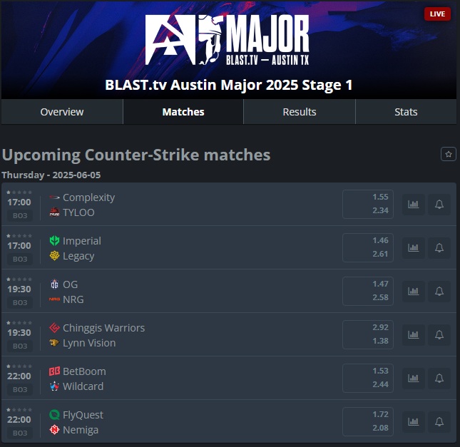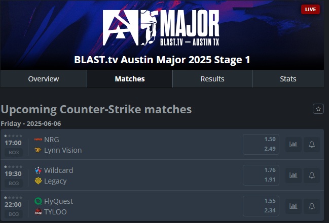 Stage 2 https://www.hltv.org/events/8437/blasttv-austin-major-2025-stage-2