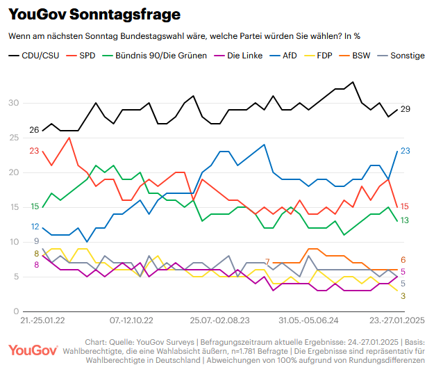 und wenn man den aktuellsten umfragen glauben schenken darf, haben unsere konservativen der mitte aus ländern wie frankreich mal wirklich absolut nichts gelernt. von dem komplett auf migration gerichteten wahlkampf profitiert nur die afd.