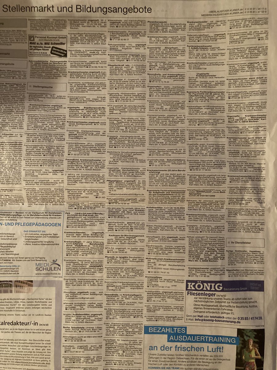 Achso und einer ist doppelt geimpft, hat zudem Covid bekommen, will sich aber nicht boostern lassen, weil er sich ausreichend geschützt fühlt und die Symptome nach Booster in seinem Bekanntenkreis recht hart waren. Regt sich aber hauptsächlich darüber auf, dass sein Genesenenstatus in Deutschland nur 62 Tage hält, in Dänemark und Schweiz dafür z.B. 1 Jahr. Den kotzt eher der bürokratische Irrlauf gerade an.