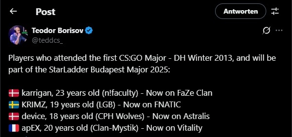 Nene, der macht schon seit einem Jahr diesen âPodcastâ. Nennt sich âAm Tisch mitâŠâ. Musst mal auf seinem Channel schauen, dort hat er echt schon viele Leute interviewed. Glaube die letzten waren, neben tizian, trilluxe und tweeday. Allerdings macht er keinen Content wie: âDie Geschichte von de_nukeâ oder sowas. BeschrĂ€nkt sich alles sehr stark auf deutsches CS und eine gemĂŒtliche GesprĂ€chsrunde mit (ehemaligen) SzenegröĂen. Glaube er stellt sich generell mittlerweile etwas breiter auf. Er hat ja auch noch das âPush2talkâ-Format mit Roman R., was im Endeffekt regelmĂ€Ăige Pressekonferenzen fĂŒr BIG sind.