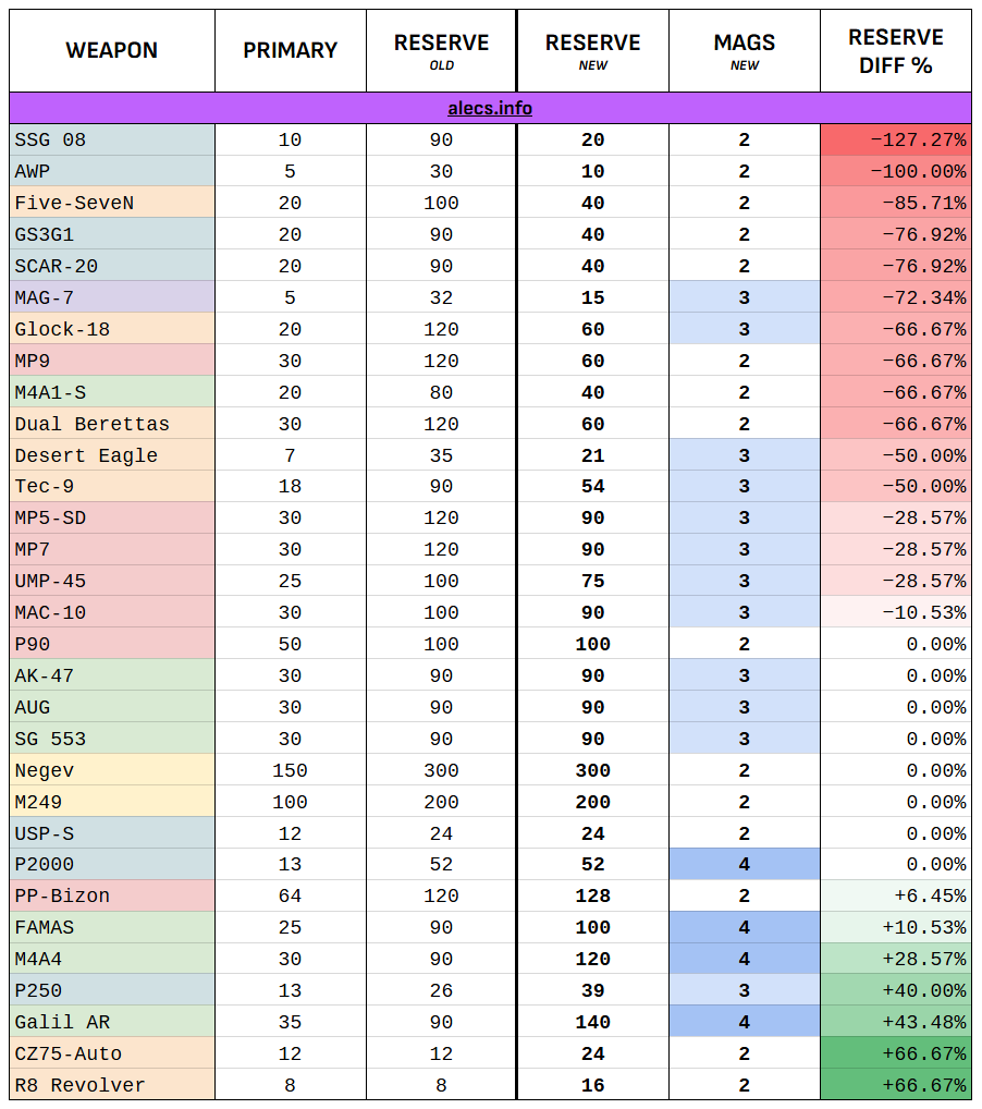 bei manchen Waffen find ich die Ammo Reduzierung ganz sinnvoll z.b. Scout, 5-7 oder Glock. Da wurde schon arg viel gespammed immer.
