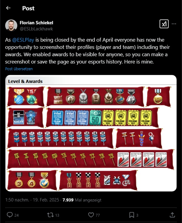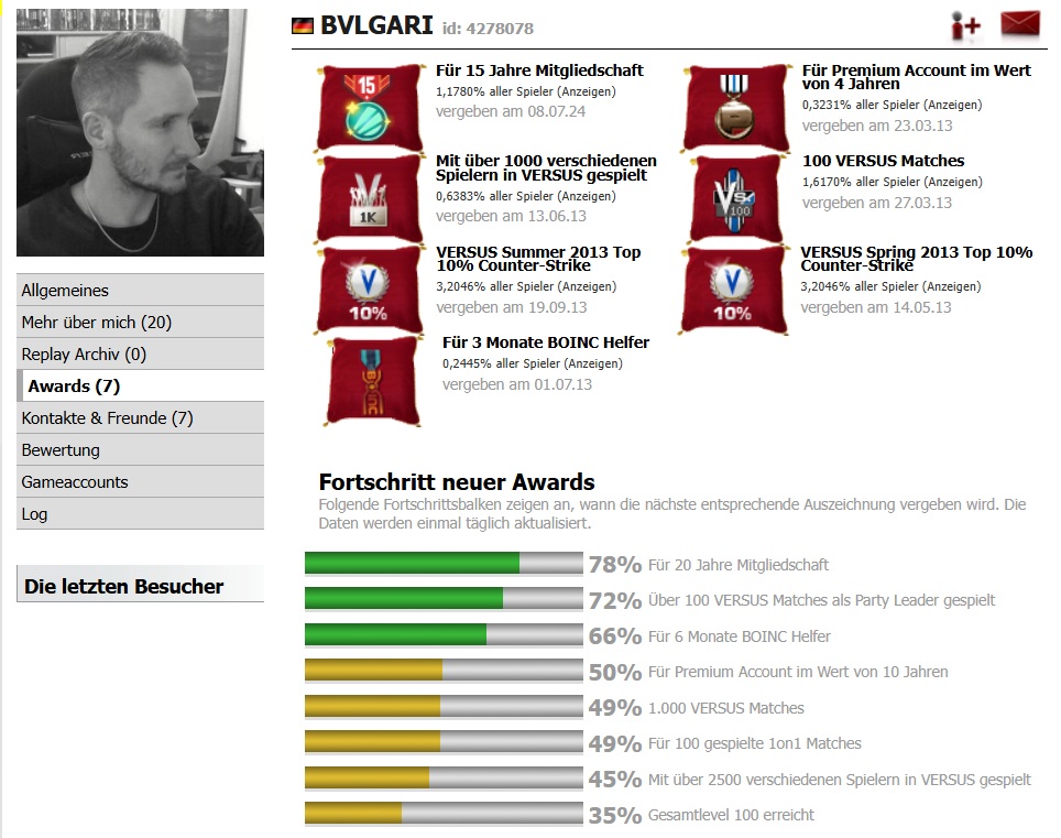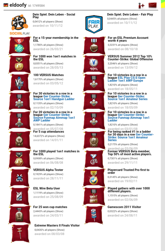 Habe genau eine Auszeichnung, weil nie eingeloggt … aber war halt zwischen 2007 und 2010(?) auf ca jedem ESL Event :(