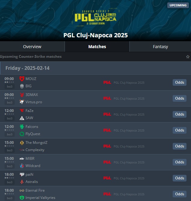 Morgen startet das PGL Cluj-Napoca 2025 Schon gegen 9 Uhr mit