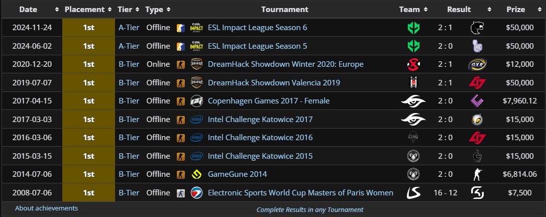 naja, sie verdient ja nicht nur Preisgeld. Eigtl war sie durchgehend in E-Sport Teams und / oder bei Hardwareherstellern angestellt. Aber ja, war vllt ein wenig übertrieben.