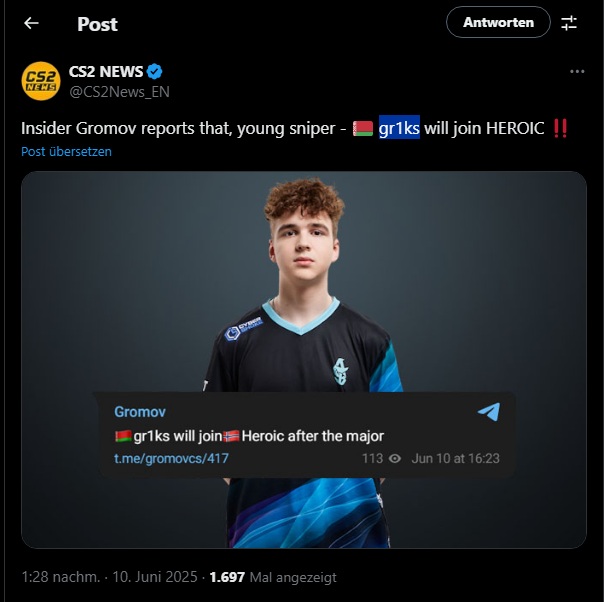 schon eine neue AWP am stizzle, den guten und relativ jungen Spieler âgr1ksâ welcher atm bei âAstrumâ spielt (ehemals aurora)