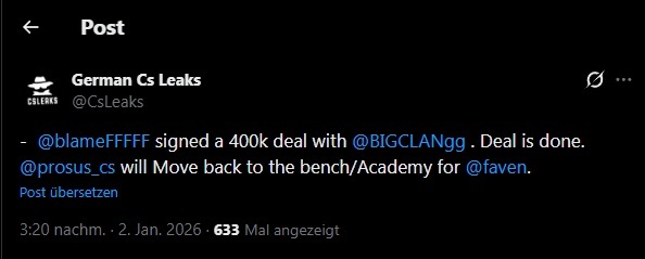 Finde den Transfer eig echt okay wenn man eh international geht. Man hat nen igl mit gut firepower, ist doch genau das, was man tabsen immer vorgeworfen hat.