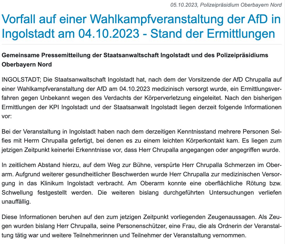 Aber dann hast du irgendwelche „Journalisten“ aus Holland die einfach mal nen Post absetzen wo sie einfach die Behauptung aufstellen das dem Chrupalla mit ner Nadel etwas injiziert wurde, sprich einen Anschlag auf ihn gab, für das es keinerlei beweise gibt und dann kommt dieser Blindgänger Musk daher und kommentiert das auch noch.