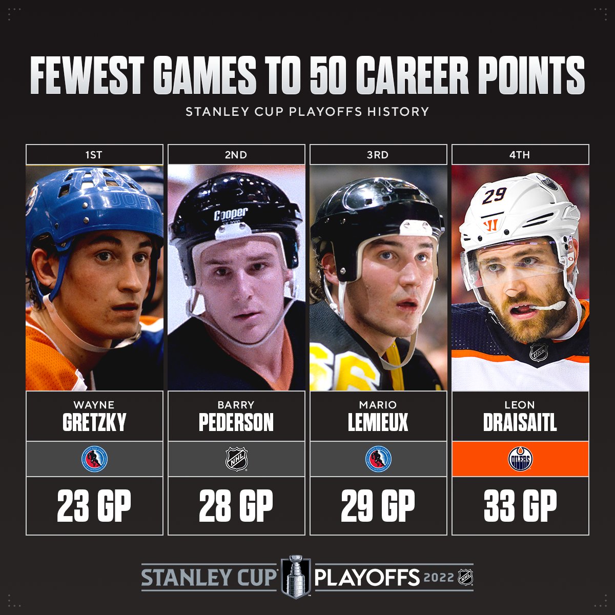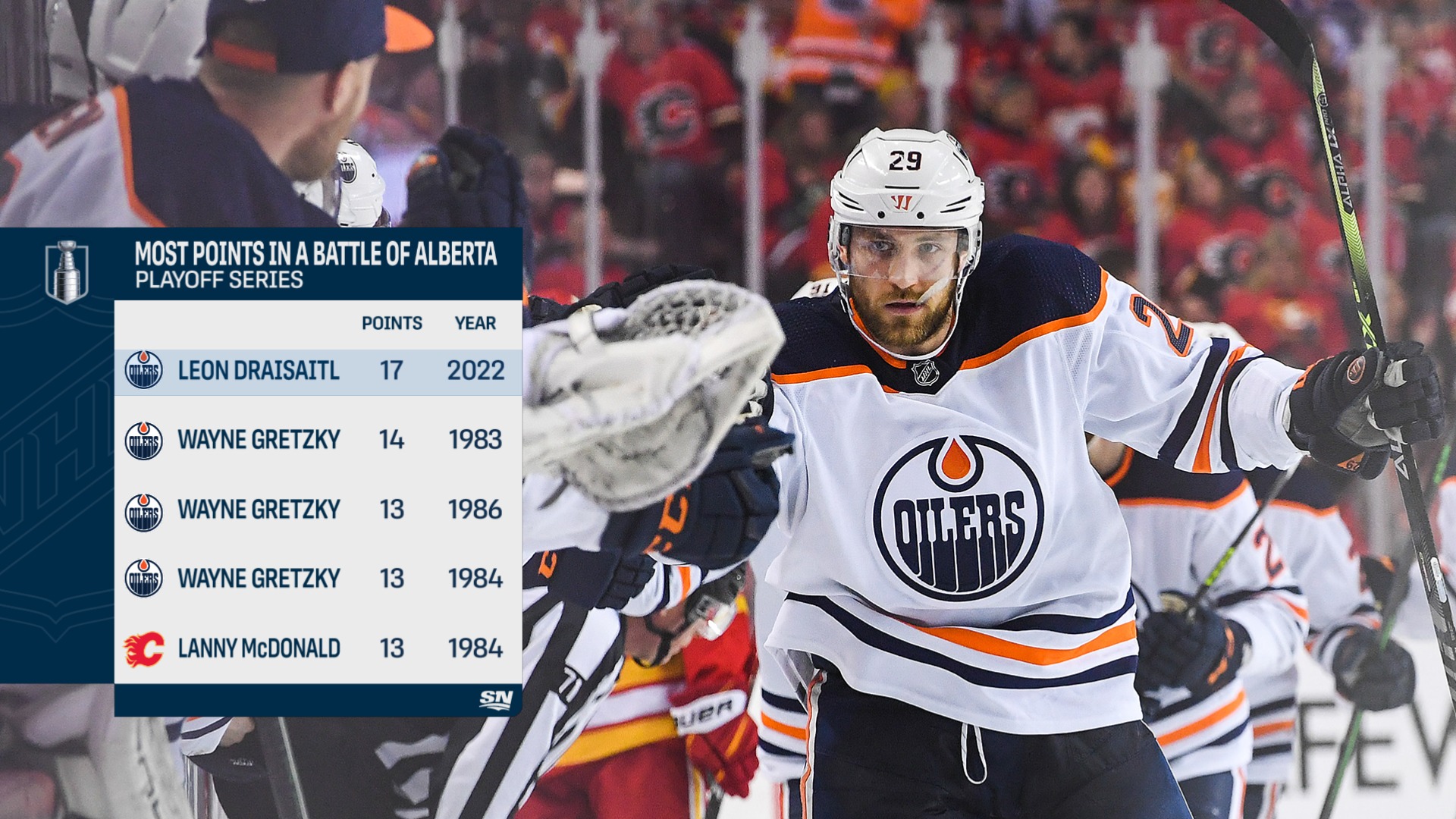 Mit insgesamt 17 Punkten (Tore und Assists zusammen) gelang Draisaitl die drittbeste Ausbeute, die jemals in einer Playoff-Serie erzielt wurde. In einer Playoff-Serie im „Battle of Alberta“, wie die Duelle zwischen den Oilers und den Flames bezeichnet werden, sind die 17 Punkte unerreicht. Gretzky folgt in der Liste als nächster Spieler mit 14 Punkten. Die legte er 1983 auf.