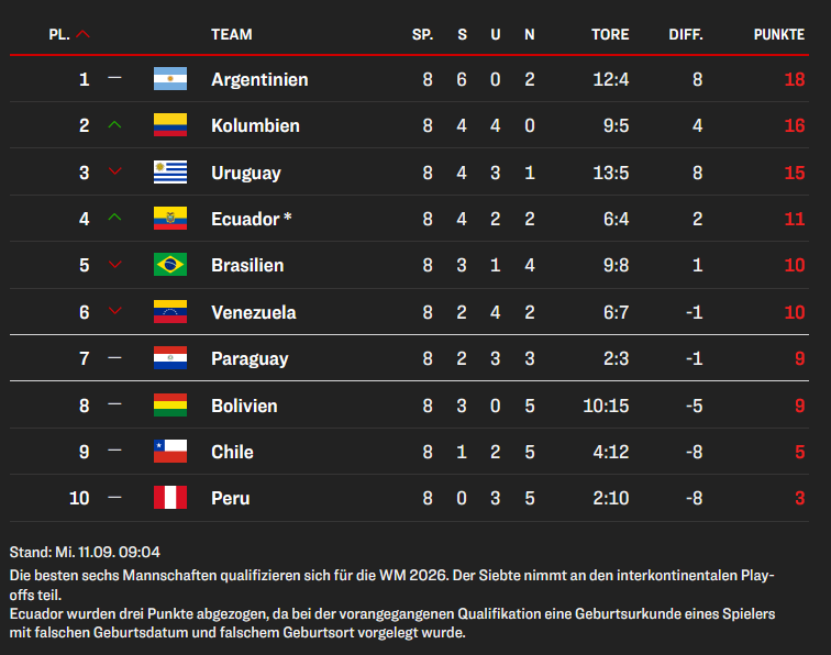 damit haben sie bei 8 spielen 4 niederlagen, 3 siege und 1 unentschieden. schade, dass es mehr oder weniger unmöglich ist, sich nicht für die wm zu qualifizieren.