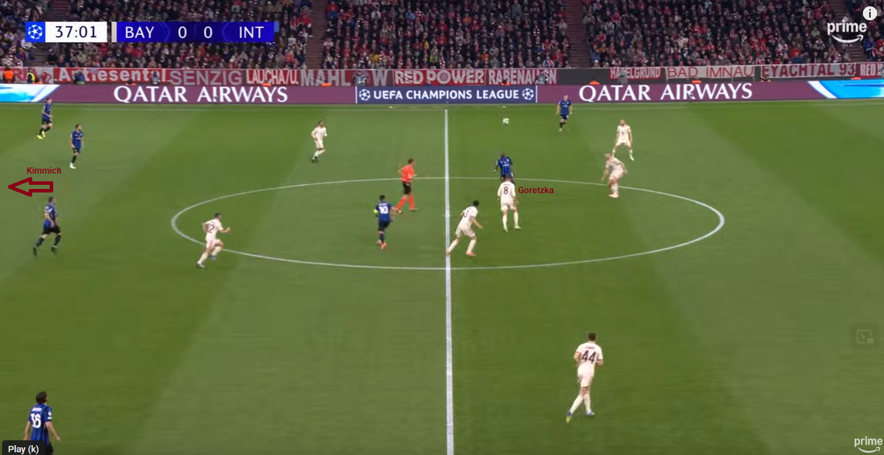 der gegenspieler von kimmich war barella. und in der von dir beschrieben szene (vor dem 0:1) ist eher goretzka das problem. kimmich läuft sogar noch vom gegnerischen 16er zurück bis zum eigenen 16er, während goretzka einfach irgendwo im nirgendwo stehen bleibt/joggt.