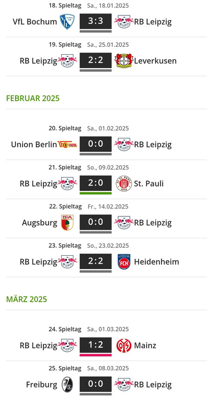 Das ist ja bei kaum einem der Fall. RB hat natürlich (aktuell) zusammen mit Stuttgart und Mainz den Vorteil, dass sie keine englischen Wochen mehr haben. Sindaber spielerisch auch mit die schlechtesten da oben.