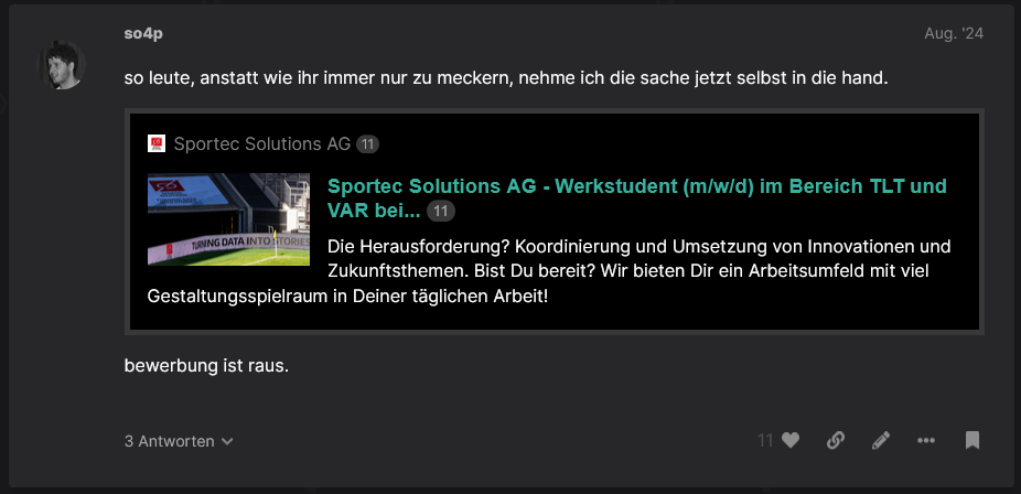vllt erinnert sich noch der ein oder andere: anfang der saison hatte ich mich auf eine stelle beim VAR beworben.