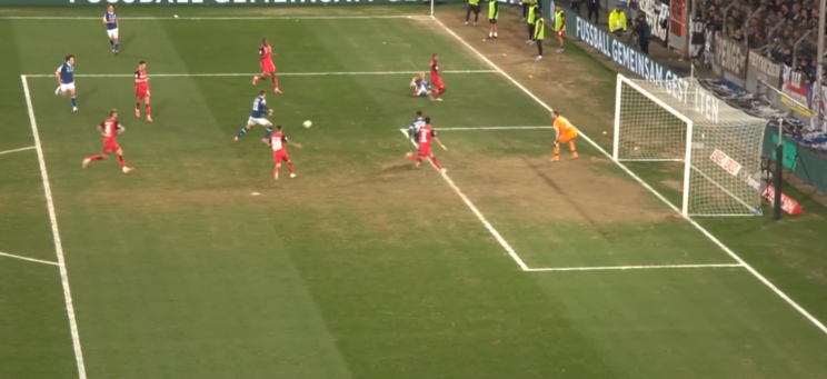 nuja, ein drittligaspieler sollte ihn aus der position ohne gegenspieler zumindest aufs tor bringen mmn.