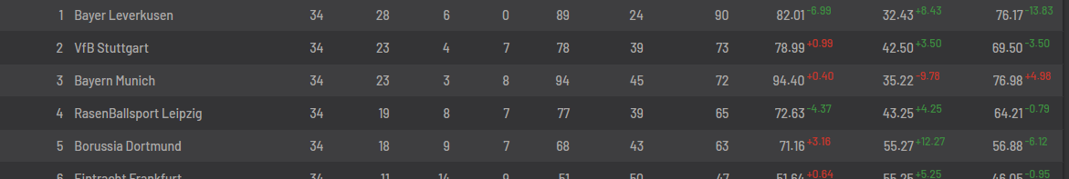 Aber Respekt, dass du dich erstmal paar Saisons nach hinten durchgeklickt hast, um ne Saison zu finden, in der der BVB überperformt hat xD