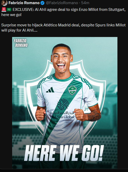 Die Ausstiegsklausel von Millot in Höhe von 20 Millionen Euro ist laut „Sky“ für Klubs aus Saudi-Arabien nicht gültig und der VfB kassiert mindestens 28 Millionen Euro.