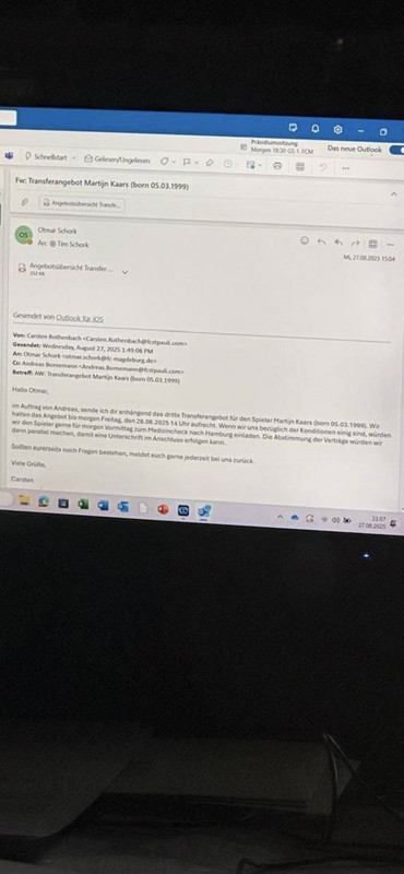 /e ah, Magdeburg hat ja sogar Anzeige erstattet: "„Der 1. FC Magdeburg ist zutiefst empört darüber, dass ein Foto einer E-Mail ohne Einverständnis und von außen durch ein Fenster, das durch eine fast komplett heruntergelassene Schalosie verdunkelt war, angefertigt und verbreitet wurde. Hierfür gibt es klare gesetzliche Regelungen, die eine Veröffentlichung oder Weitergabe solcher Inhalte ausdrücklich verbieten. Aus diesem Grund haben wir bereits Anzeige bei der Polizei erstattet. Mit diesem Verhalten hat diejenige Person, die das Foto gemacht hat, dem FCM massiven Schaden zugefügt. Auch ist das Verhalten keineswegs im Sinne unserer treuen Fans.
