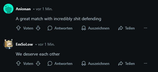 Joa, schade. Unnötiger Punktverlust gegen so einen Mittelfeldklub, aber auswärts kann man den mitnehmen. Jetzt wichtig, gegen Bremen zu gewinnen