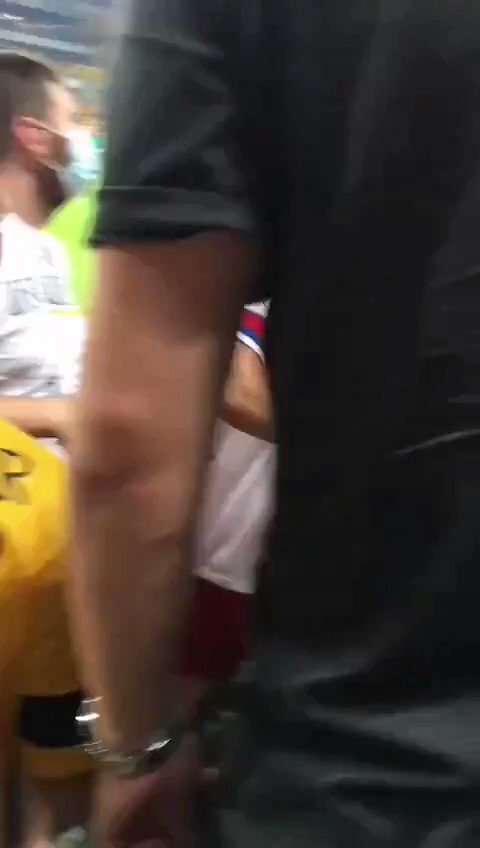 Haha wie der eine Fan sich erst die Maske aufzieht. Herrlich