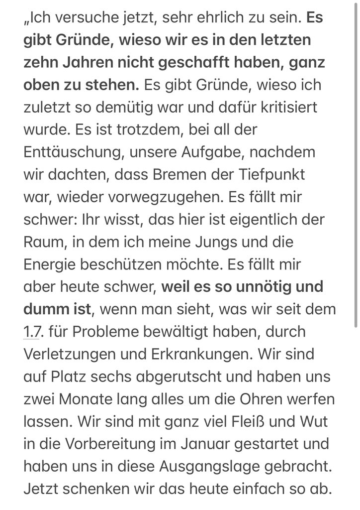 So n Heulsusen Gelaber ist das letzte was wir und die Mannschaft brauchen. „Och wir armen, haben uns da jetzt so gut hoch gekämpft“ lmao.
