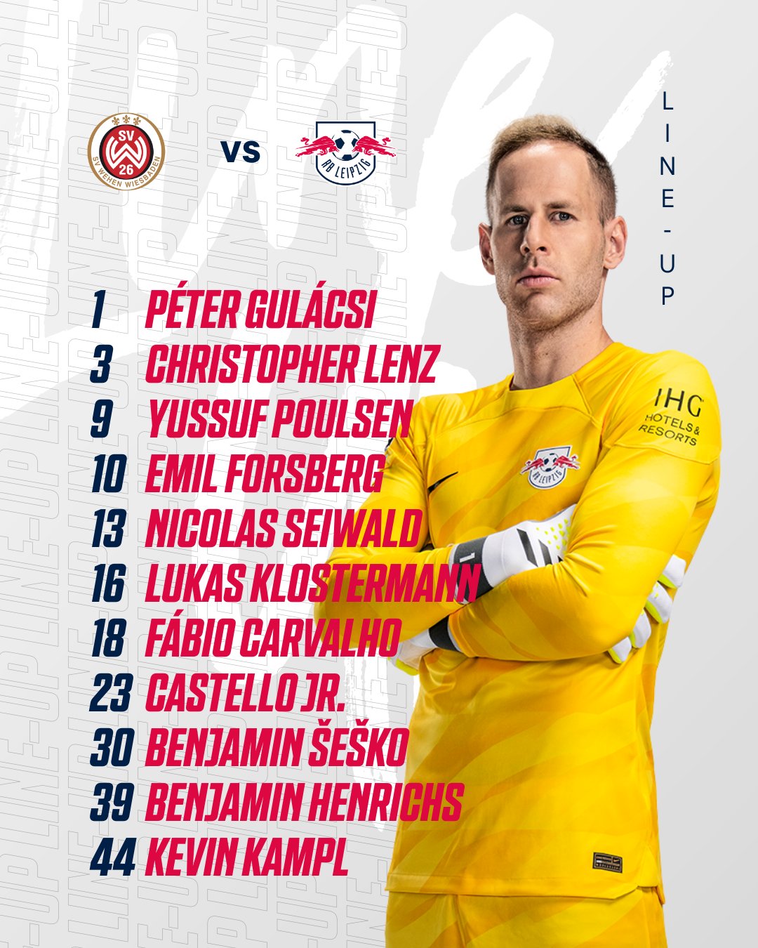 Gulacsi - Henrichs, Klostermann, Lukeba, C. Lenz - Seiwald, Kampl, Fabio Carvalho, Forsberg - Poulsen, Sesko