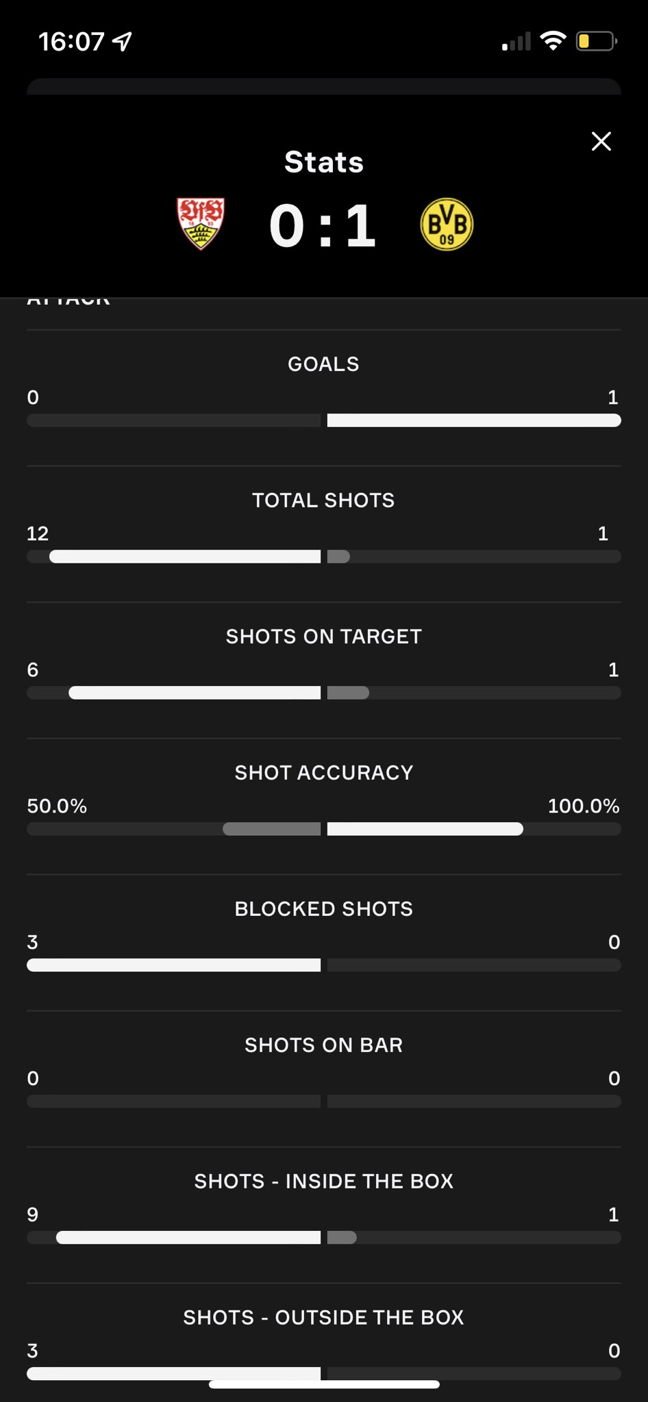 Guckst bei Kicker rein und siehst Stuttgart 12:1 Torschüsse