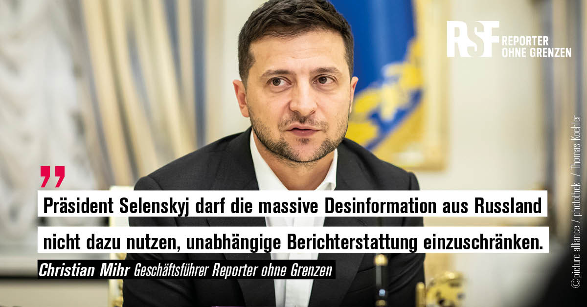 Was aber der Tatsache entspricht ist zum Beispiel das Selenskj fälschlicherweise prorussische Medien nicht frei arbeiten lässt.