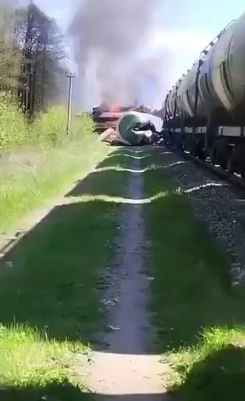 Gezielte Sprengung von Bahngleise um einen russischen Treibstoffzug zu entgleisen.