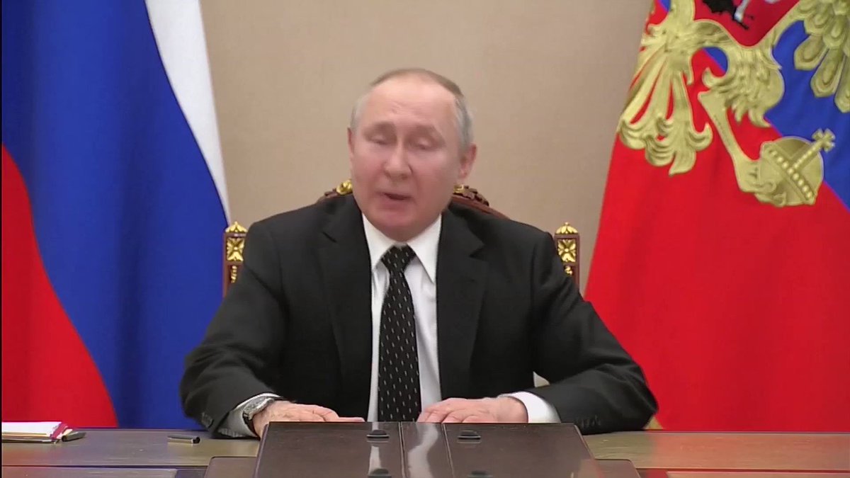 Als Reaktion auf die #Sanktionen gegen den #Kreml versetzt der russische Präsident heute die Abwehr-Streitkräfte seines Landes in Alarmbereitschaft. (Unser Dolmetscher sagt Atom-Streitkräfte, das ist aber wohl nicht korrekt.)