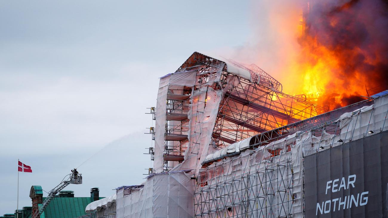 Die historische Börse in der dänischen Hauptstadt Kopenhagen ist aufgrund eines Brandes teilweise eingestürzt. Die Turmspitze des Gebäudes brach durch die Flammen ein. Augenzeugen berichteten von einem großen Knall, schrieb die dänische Zeitung Berlingske. Das Gerüst, das an der historischen Börse stand, brach demnach ebenfalls zusammen. Die erste Meldung über einen Brand ging nach Angaben der Feuerwehr um 7.36 Uhr ein.