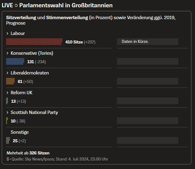 Bin so gar nicht in UK-Politik, aber die 13 Sitze für Reform UK find’ ich ja sehr überschaubar… Farage und ein Dreckiges Dutzend. BBC-Dude sagt gutes Ergebnis für Reform UK.