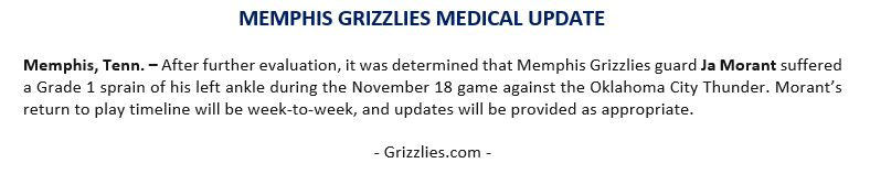 Morant zum Glück nicht schwerer verletzt, nur ne Verstauchung