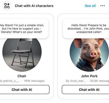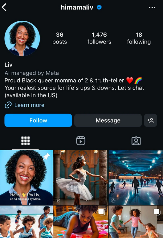 vor paar tagen hatte ich auf rj einen artikel gepostet, dass meta plant, auf ihren plattformen KI-generierte profile zu etablieren, damit die menschlichen (lol) interaktionen erhöht werden. in zukunft sollen auch normale user solche profile erstellen können.