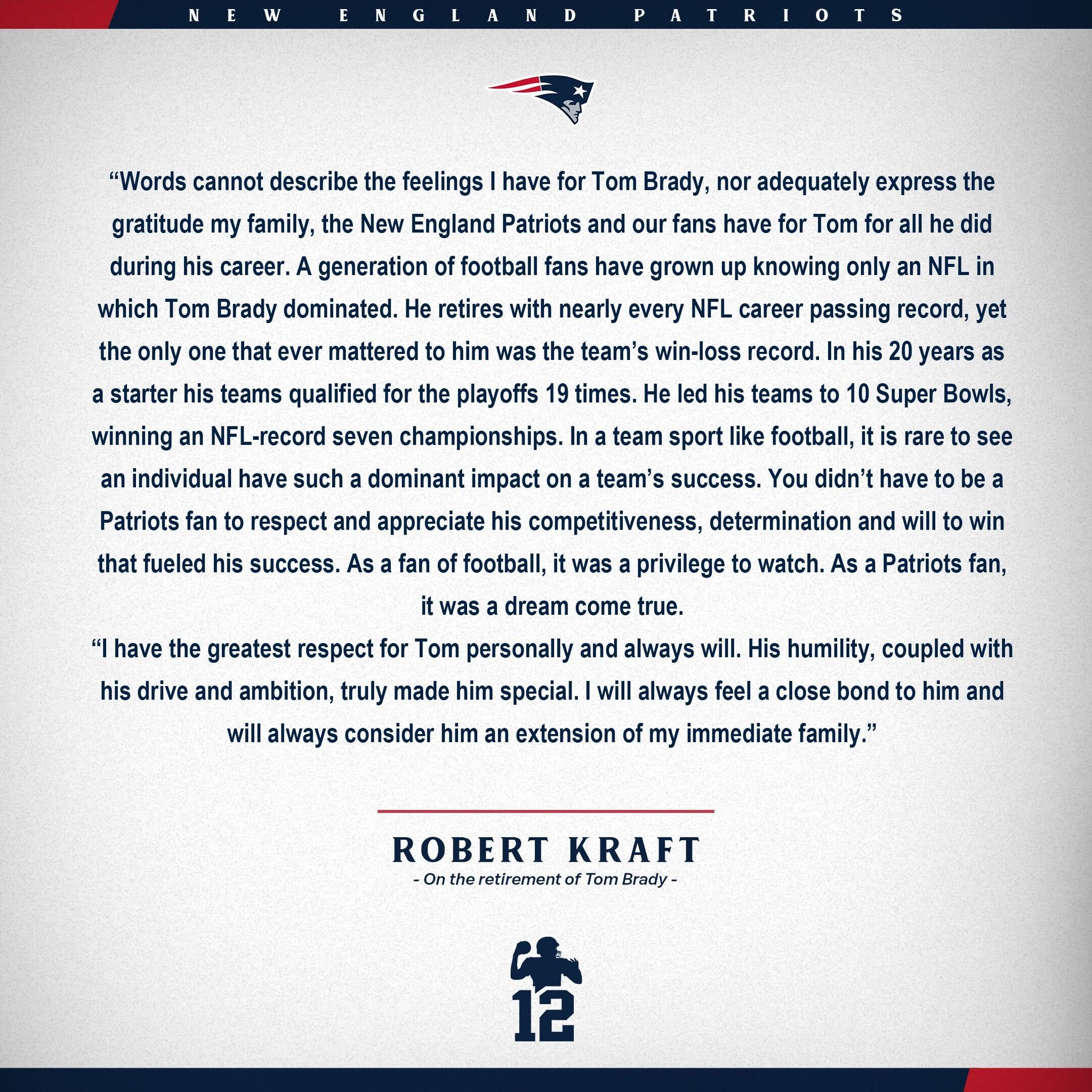 Ansonsten hat Brady jetzt auch den Pats für ihr Statement gedankt
