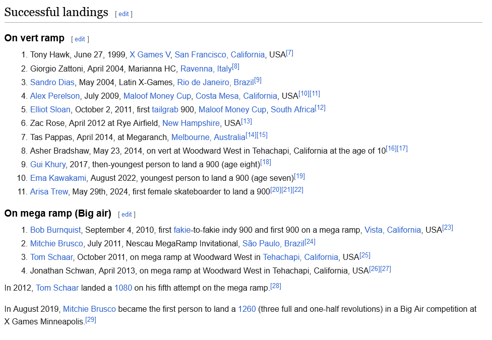 Naja … den Trick haben bis heute nur wenige Menschen auf einer Vert Ramp erfolgreich gestanden. Ema (die aus dem Video oben) hat den vor 2 Jahren auch schon als 7 jährige gestanden übrigens. In den letzten 10 Jahren haben den nur 3 unterschiedliche Leute erfolgreich gezeigt.