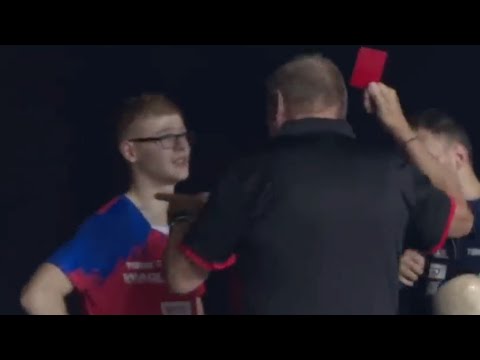 Karte bekommen, nachdem er direkt nach dem Spiel seinen Schläger weggeworfen hat. Ist sichtlich fertig und da merkt man gut, dass er doch erst 18 Jahre alt ist.