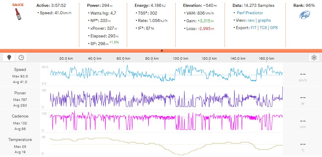 The first 1,5 hours (before Soudet) Buchmann rode at 5.2NP/kg, auwch! Then on Soudet, Buchmann rode at 6W/kg for 41’, the last 20’ on 6.3W/kg and the last 10’ on 6.6W/kg, even more auwch!