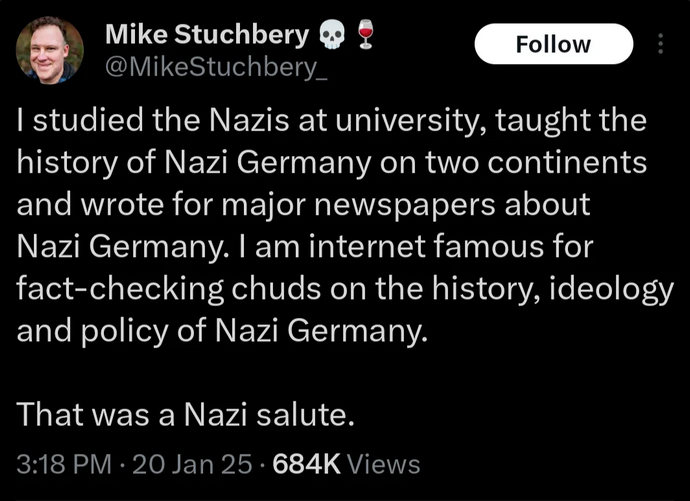 Wenn für euch die erste Assoziation „Hitlergruss Hitlergruss“ ist, ist das fine durch die schulerziehung sind wir ja alle drauf gepolt. Das trifft aber auf den Großteil der Welt nicht zu von daher sollte man vlt auch seine eigene Voreingenommenheit mal in Frage stellen oder man labert halt was von Winkeln ;)