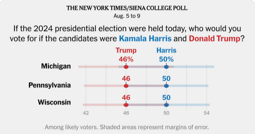 Ich weiĂ jetzt nicht, ob die in ihrem Text noch Bezug auf eine weitere Umfrage nehmen, oder einfach zu blöd sind, NYT zu lesen, wenn sie schrieben â[âŠ] die Beliebtheit von Harris bei den registrierten WĂ€hlern und WĂ€hlerinnen [âŠ] wie die Umfrage von »New York Times« und Siena College ergabâ
