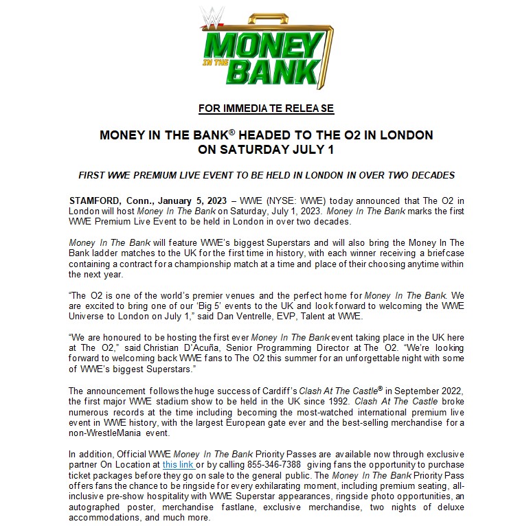 MITB wird in London stattfinden. Wird bestimmt eine gute Stimmung solange nicht wirklich Vinnie Mac wieder übernehmen sollte.